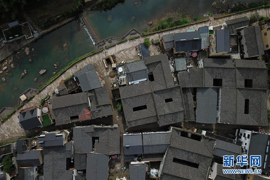 5月26日無(wú)人機(jī)拍攝的富春江鎮(zhèn)石舍村的古建筑群。 石舍村是浙江省桐廬縣富春江鄉(xiāng)村慢生活體驗(yàn)區(qū)中的三個(gè)村落之一,位置偏僻,依溪而居,風(fēng)景秀美。近年來(lái),石舍村結(jié)合古建筑保護(hù)工作,在清潔、美化村莊的基礎(chǔ)上,對(duì)一些廢棄古建筑進(jìn)行修繕,引入咖啡館、民宿等文化創(chuàng)意類(lèi)項(xiàng)目,優(yōu)良的生態(tài)環(huán)境和濃郁的文化氛圍吸引大批游客前來(lái)體驗(yàn),小山村走上了一條發(fā)展美麗經(jīng)濟(jì)之路。2018年,石舍村接待游客10萬(wàn)8千余人次,旅游經(jīng)營(yíng)凈收入1260余萬(wàn)元。 新華社記者 黃宗治 攝