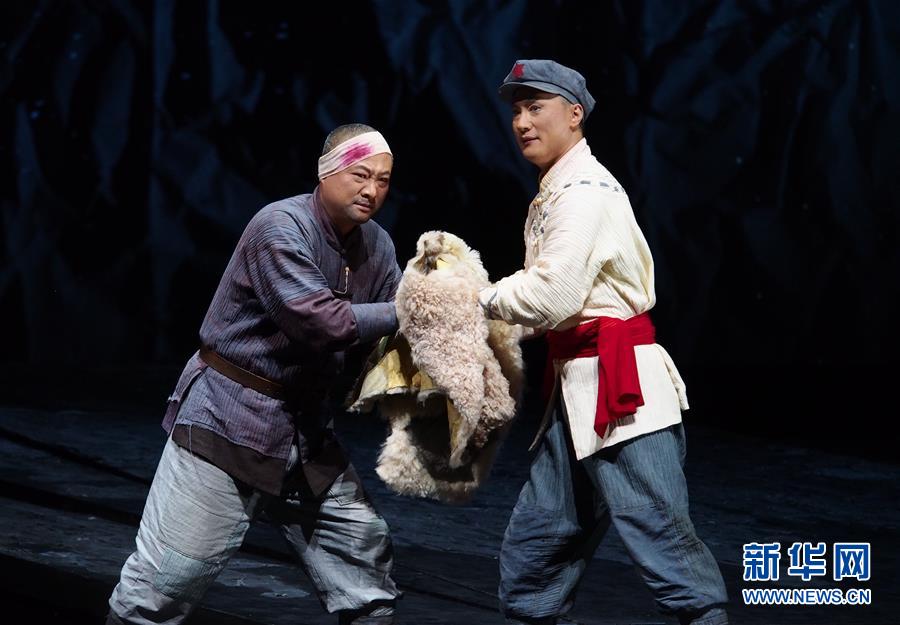 5月27日,演員在上海美琪大戲院表演現(xiàn)代京劇《紅軍故事》 。 新華社記者 任瓏 攝