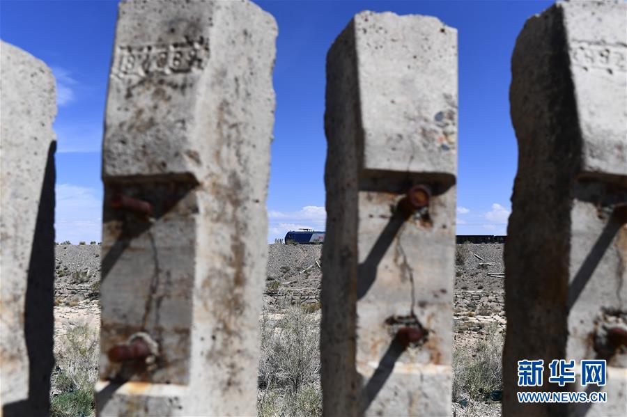 一列火車行駛在青海省海西蒙古族藏族自治州德令哈市境內的青藏鐵路線上(2018年6月28日攝)。新華社記者張宏祥攝