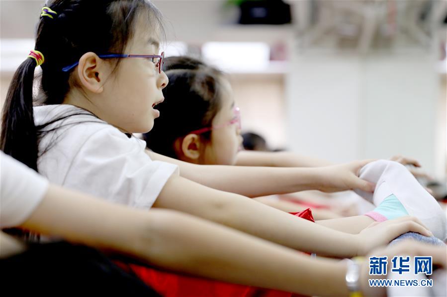 在聲輝粵劇推廣協(xié)會排練室里,孩子們在壓腿(6月8日攝)。 聲輝粵劇推廣協(xié)會成立于2003年,是香港重要粵劇藝術團體之一,致力于向青少年推廣粵劇。協(xié)會目前有兩個初班,3個中班,一個青少年班?;泟∮址Q“廣東大戲”,表演技藝包括“唱做念打”,即唱功、身段、臺詞、武打,主要流行于廣東、廣西和香港、澳門等地區(qū)。2009年,粵劇被列入聯(lián)合國教科文組織人類非物質文化遺產代表作名錄,今年正逢十周年。 新華社記者 吳曉初 攝