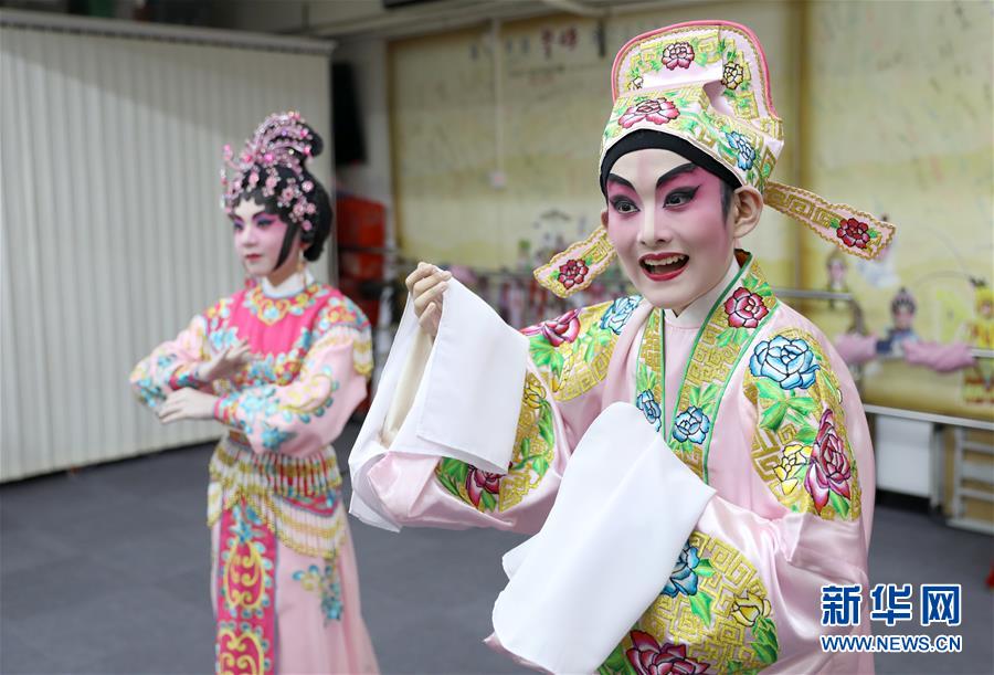 陸瑞徽(左)和利文喆在表演折子戲《艷曲醉周郎》(6月8日攝)。 聲輝粵劇推廣協(xié)會成立于2003年,是香港重要粵劇藝術(shù)團(tuán)體之一,致力于向青少年推廣粵劇。協(xié)會目前有兩個初班,3個中班,一個青少年班。粵劇又稱“廣東大戲”,表演技藝包括“唱做念打”,即唱功、身段、臺詞、武打,主要流行于廣東、廣西和香港、澳門等地區(qū)。2009年,粵劇被列入聯(lián)合國教科文組織人類非物質(zhì)文化遺產(chǎn)代表作名錄,今年正逢十周年。 新華社記者 吳曉初 攝