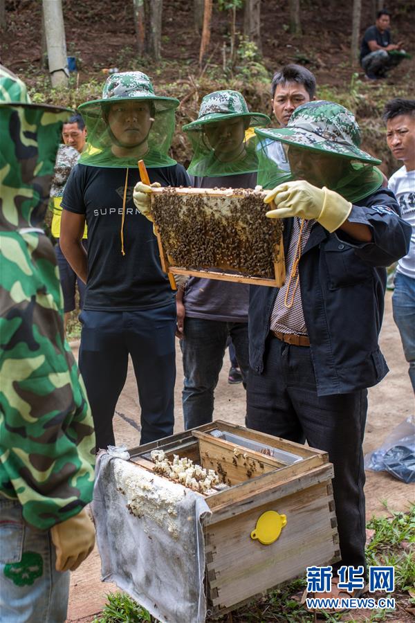 在云南省西盟縣勐梭鎮(zhèn)班母村中華蜂養(yǎng)殖基地,村民在學(xué)習(xí)養(yǎng)蜂技術(shù)(6月16日攝)。 新華社記者 胡超 攝