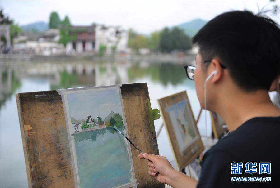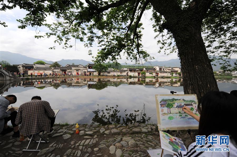 4月24日,繪畫愛(ài)好者在宏村風(fēng)景區(qū)寫生。近日,隨著氣溫升高,位于安徽省黟縣的古村落西遞和宏村春意盎然,景色如畫。大批繪畫愛(ài)好者前來(lái)寫生,用畫筆描繪古村春色。 新華社記者 任鵬飛 攝