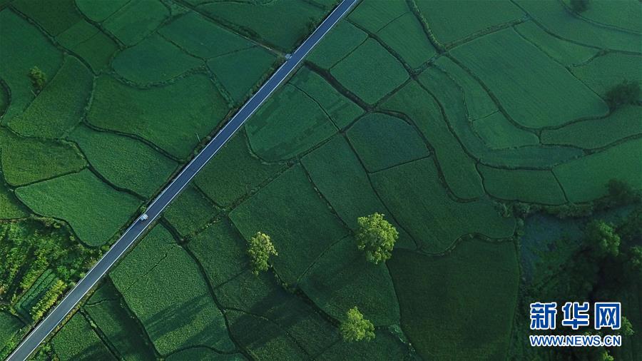 這是8月4日無人機拍攝的安徽黟縣宏村風(fēng)景區(qū)附近的農(nóng)田。新華社記者 張端 攝