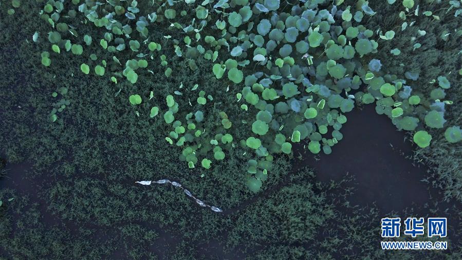 這是8月4日無(wú)人機(jī)拍攝的安徽黟縣宏村風(fēng)景區(qū)附近的荷塘。新華社記者 張端 攝