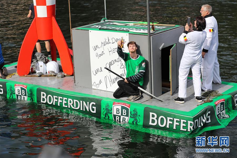 當(dāng)日,一年一度的水上狂歡活動“浴缸劃船節(jié)”在比利時迪南舉行。該活動要求參賽者制造的船上至少帶有一個浴缸,參賽者需完成一千米的水上巡游,最后根據(jù)設(shè)計創(chuàng)意及現(xiàn)場表演而非行進(jìn)速度評選出優(yōu)勝者。“浴缸劃船節(jié)”始于1982年,今年的主題是"我們在月球漫步"。 新華社記者 張鋮 攝