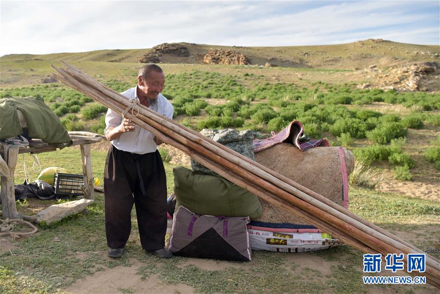 在新疆阿勒泰地區(qū)福??h,牧民收拾家中大件物品并準(zhǔn)備將其提前運(yùn)至夏季牧場(6月6日攝)。新華社記者丁磊攝