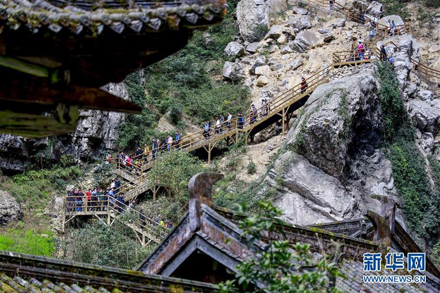 游客在天生三橋景區(qū)游覽(3月27日攝)。 隨著天氣轉(zhuǎn)暖,重慶武隆天生三橋景區(qū)風景如畫,氣勢磅礴的天生石橋和綠意盎然的山林相映成趣,吸引眾多游客前來踏春賞景。 新華社記者劉潺攝
