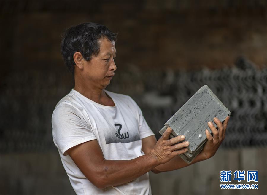 龍革雄在搭建雞舍(8月16日攝)。 新華社記者 黃孝邦 攝