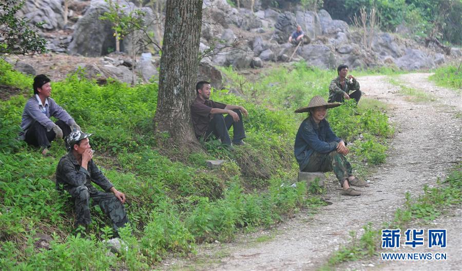 種樹結束后,龍革雄(右二)在山上休息(2013年5月15日攝)。新華社記者 黃孝邦 攝