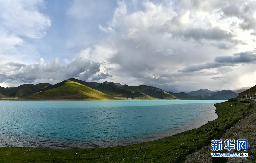 8月31日拍攝的羊卓雍錯(cuò)風(fēng)光(拼接照片)。新華社記者 李鑫 攝