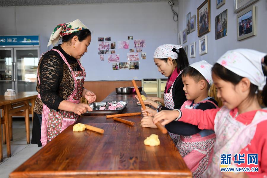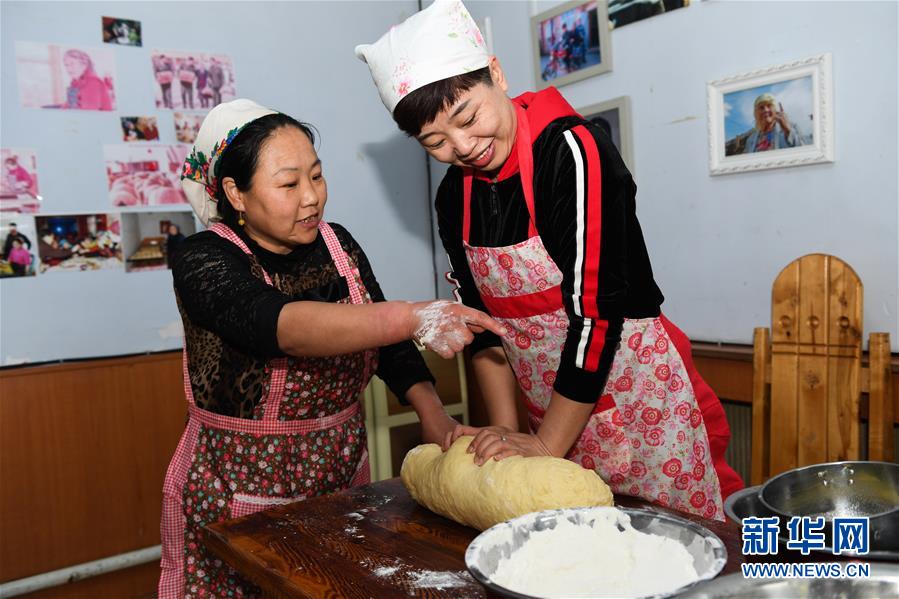 8月27日,付艷梅在列巴房教一名學(xué)徒揉面團(tuán)。新華社記者劉磊攝