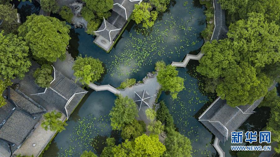 這是5月21日拍攝的蘇州拙政園局部(無人機(jī)拍攝)。 新華社記者 沈伯韓 攝