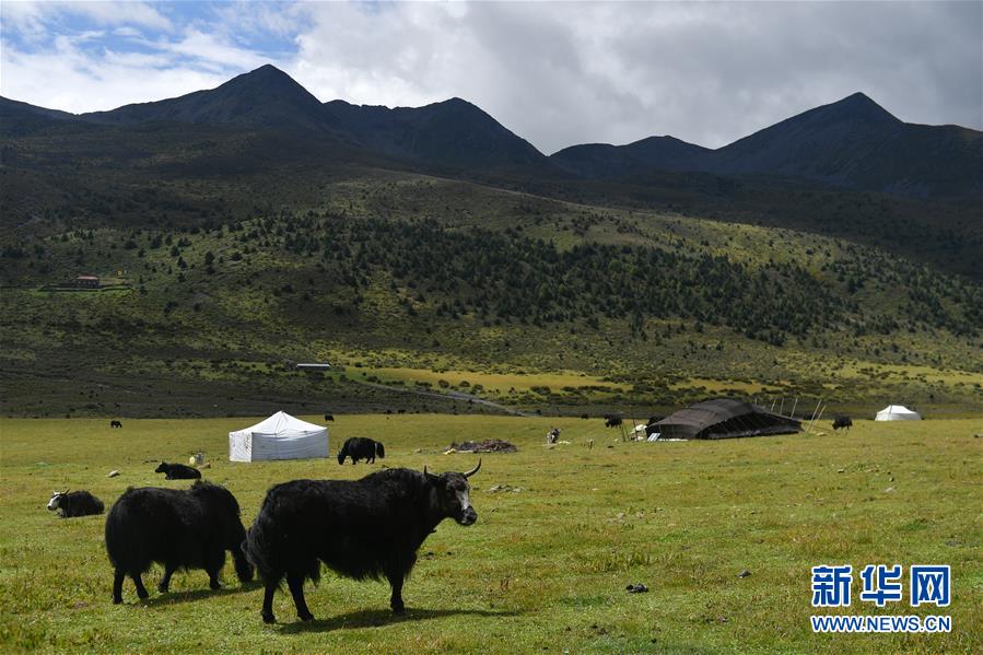 這是9月8日在四川省康定市呷巴鄉(xiāng)俄達(dá)門巴村附近拍攝的一處藏族牧民的牦牛牧場。新華社記者孫瑞博攝