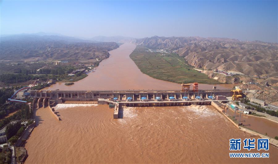 黃河青銅峽水利樞紐工程(9月1日無人機拍攝)。新華社記者劉詩平攝