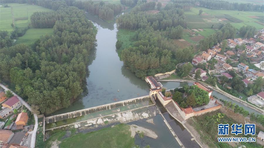 8月22日拍攝的湖北襄陽長渠渠首(無人機拍攝)。新華社記者熊琦攝