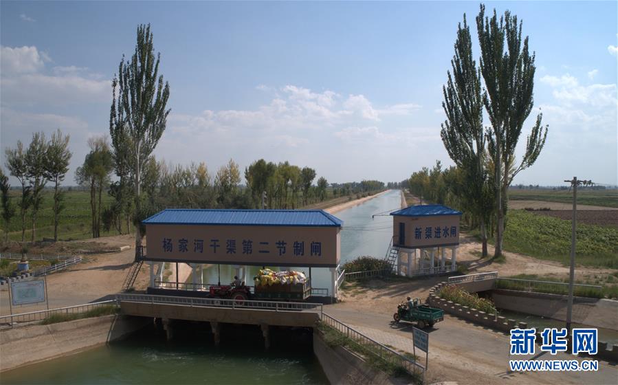 9月4日無人機拍攝的河套灌區(qū)楊家河干渠第二節(jié)制閘。 新華社記者 劉詩平 攝