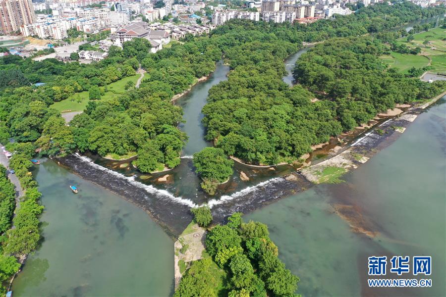 這是6月30日無人機拍攝的廣西興安縣靈渠。 位于廣西興安縣的靈渠是世界上保存最完整的古代水利工程之一,至今仍發(fā)揮著農(nóng)田灌溉、排洪泄洪作用。2018年,靈渠入選世界灌溉工程遺產(chǎn)名錄。 新華社記者 周華 攝