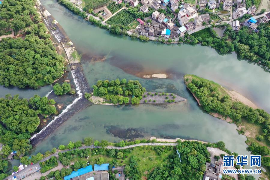這是廣西興安縣靈渠水道上建設(shè)的灌溉堰壩(2017年6月8日攝)。 新華社記者 陸波岸 攝