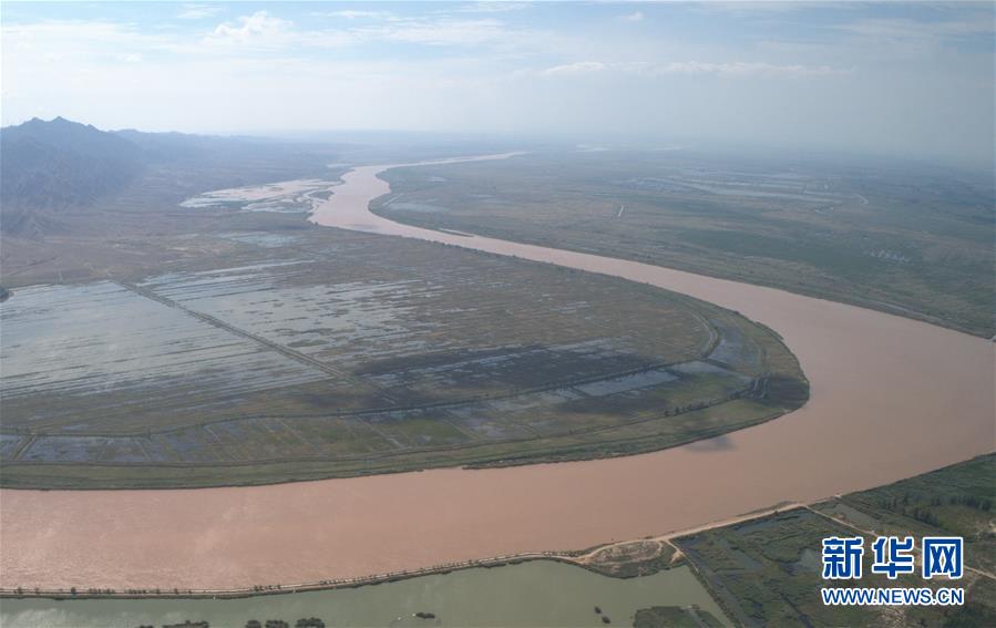 青銅峽市境內(nèi)的黃河(9月3日無(wú)人機(jī)拍攝)。新華社記者劉詩(shī)平攝