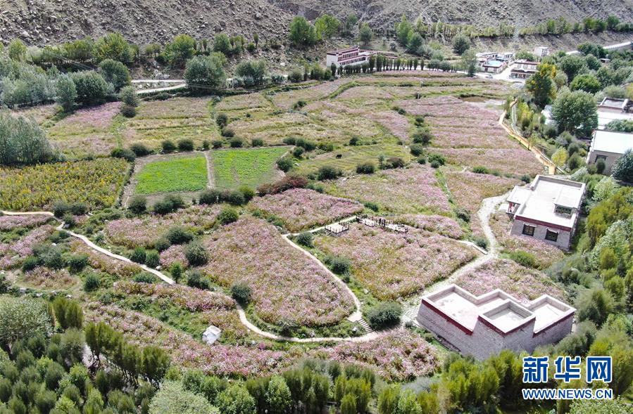 9月13日無人機(jī)拍攝的尼木縣山谷間盛開的波斯菊。 時值中秋,西藏拉薩市尼木縣的山谷間,大片波斯菊爭相盛開,宛如花的海洋。 新華社記者 晉美多吉 攝