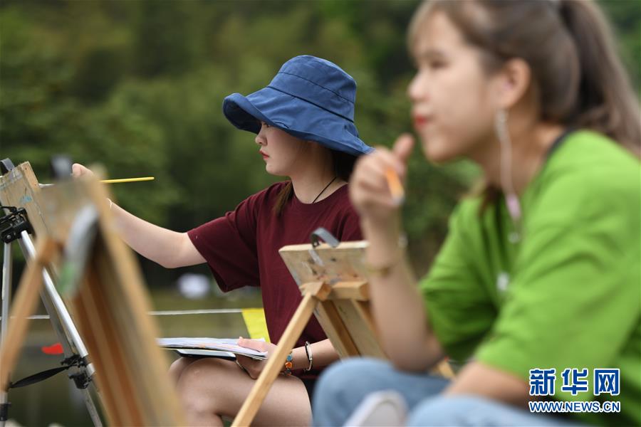 4月24日,繪畫愛好者在西遞風景區(qū)寫生。新華社記者張端攝