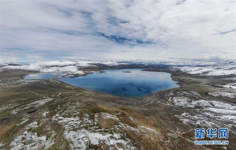 9月24日無(wú)人機(jī)拍攝的拿日雍錯(cuò)。拿日雍錯(cuò)位于西藏山南市錯(cuò)那縣北部,海拔4900米,像藍(lán)寶石般鑲嵌在雪山草原之間。新華社記者晉美多吉攝