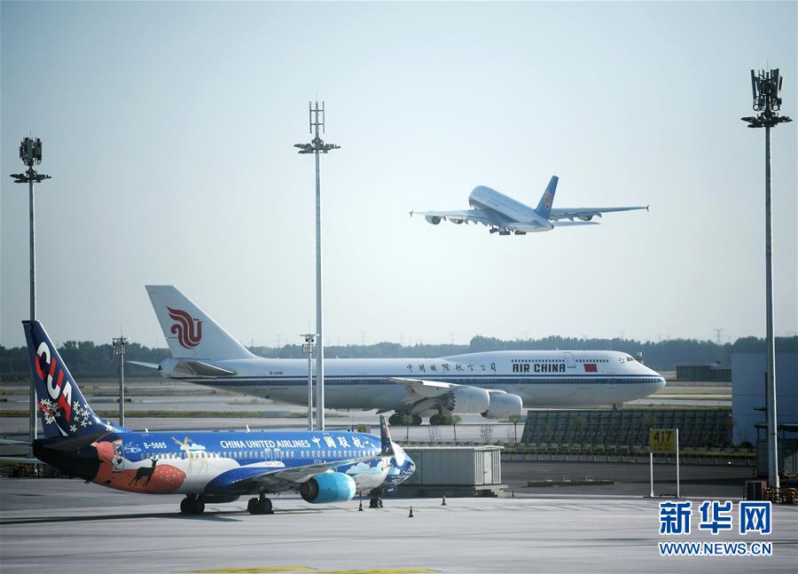 9月25日,一架中國國際航空公司飛機在北京大興國際機場準備起飛。新華社記者張晨霖攝