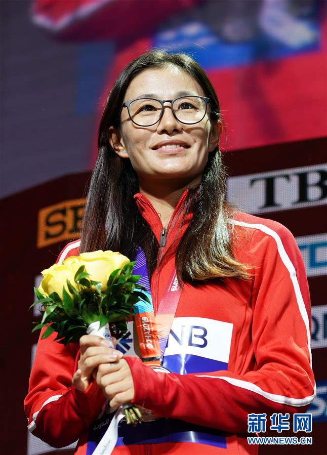 9月30日,亞軍中國選手切陽什姐在頒獎儀式上。新華社記者 徐速繪 攝