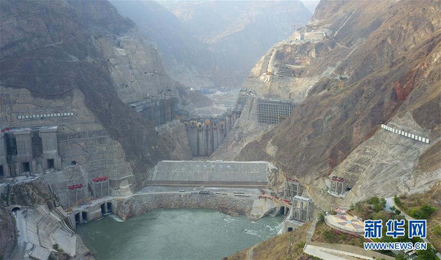 這是用無人機(jī)拍攝的建設(shè)中的烏東德水電站全景(5月30日攝)。新華社記者陳曄華攝