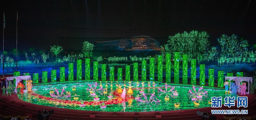 10月9日,演員在節(jié)目“綠野漫游”中表演。當日,2019年中國北京世界園藝博覽會閉幕式在北京舉行。新華社記者翟健嵐攝