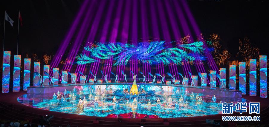 10月9日,演員在節(jié)目“花開無界”中表演。當(dāng)日,2019年中國北京世界園藝博覽會閉幕式在北京舉行。新華社記者翟健嵐攝