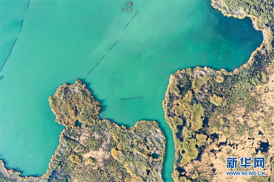 這是新疆博斯騰湖濕地一景(10月12日無(wú)人機(jī)拍攝)。入秋以來(lái),新疆博斯騰湖碧波蕩漾,美景如畫,吸引各地游客前來(lái)游玩。新華社記者丁磊 攝