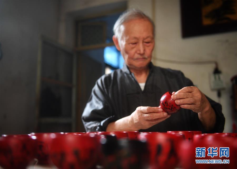 10月12日,丁國(guó)坤在家中檢查最新制成一批脫胎漆器的質(zhì)量。新華社記者胡晨歡攝