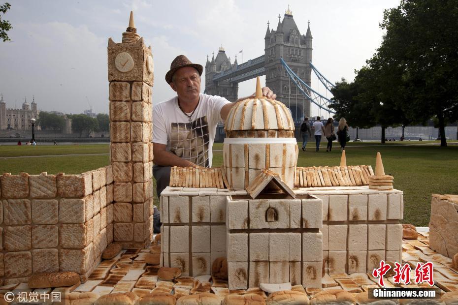 藝術(shù)家用面包等烘焙食品打造微縮倫敦地標(biāo)建筑。圖片來源:視覺中國