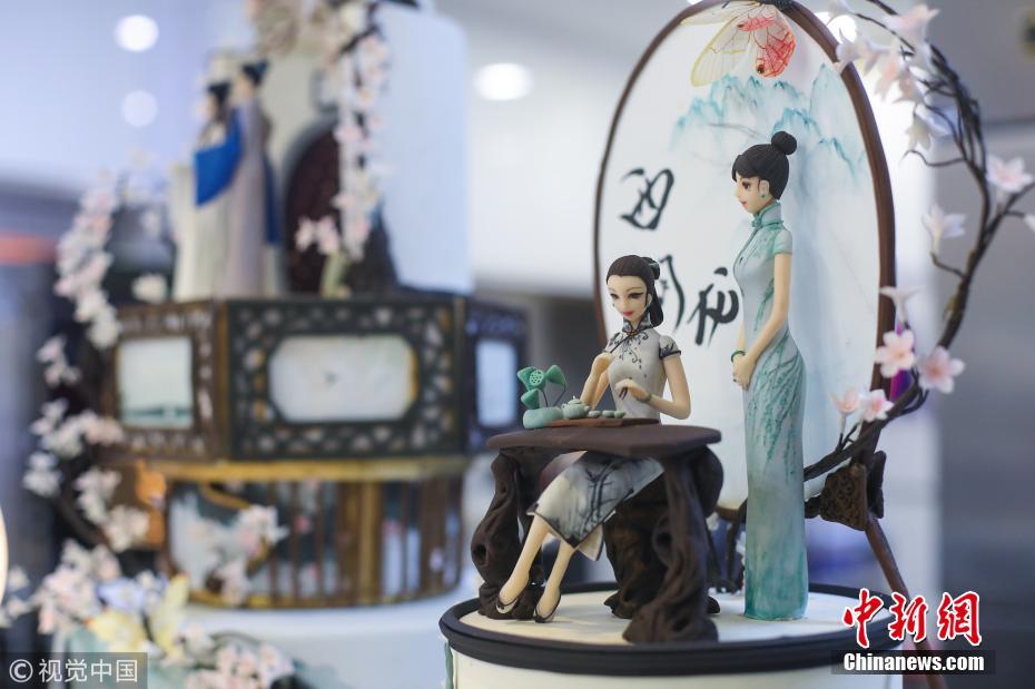 杭州翻糖蛋糕師將白娘子、雷峰塔等杭州文化符號雕刻在翻糖蛋糕上,從最基礎(chǔ)的設(shè)計(jì)和構(gòu)思,然后動手制作、調(diào)色,最后組裝,濃濃的“中國風(fēng)”融合舌尖上的甜美藝術(shù),碰撞出了意想不到的火花。圖片來源:視覺中國