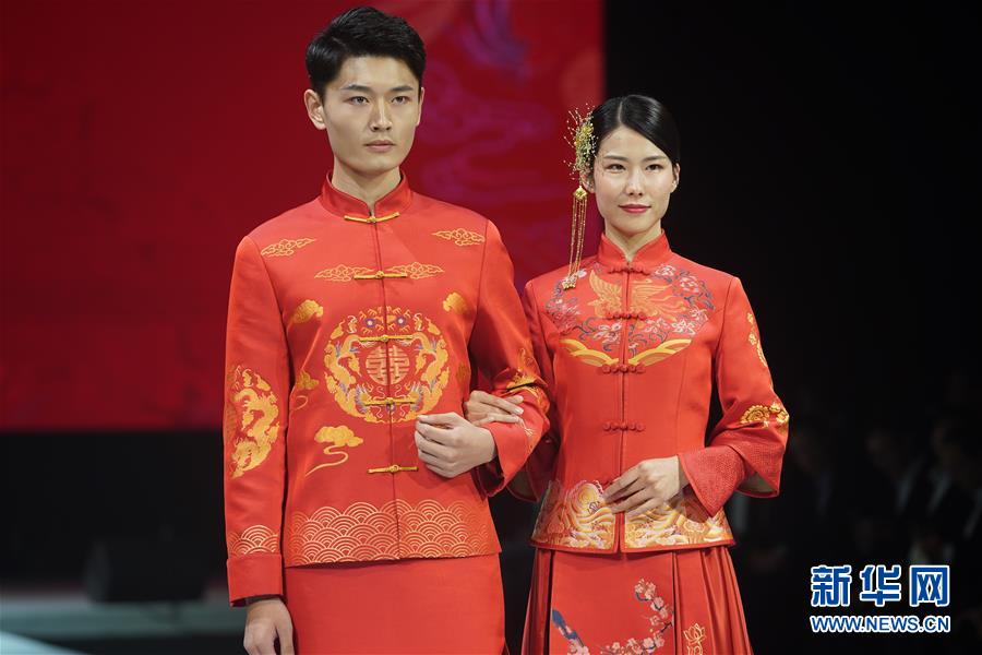 10月16日,模特在展示婚慶禮服。 當(dāng)日,“愿·緣·圓”上久楷婚慶主題秀在江蘇省蘇州市吳江區(qū)盛澤鎮(zhèn)舉行。 新華社記者 季春鵬 攝