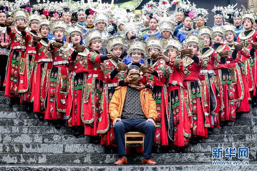 10月26日,苗族同胞用“高山流水”的方式給游客敬酒。新華社記者歐東衢攝