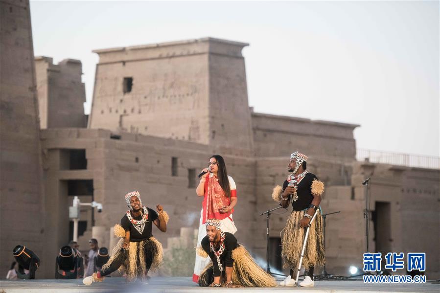 10月27日,演員在位于埃及阿斯旺的菲萊神廟表演。 第四屆中非藝術節(jié)27日在埃及南部歷史文化名城阿斯旺開幕。來自中國、埃及、尼日利亞、烏干達、突尼斯等約30個國家的藝術團在開幕式上奉獻了各具特色的表演,吸引數(shù)百名當?shù)赜^眾前往欣賞。  新華社記者 鄔惠我 攝