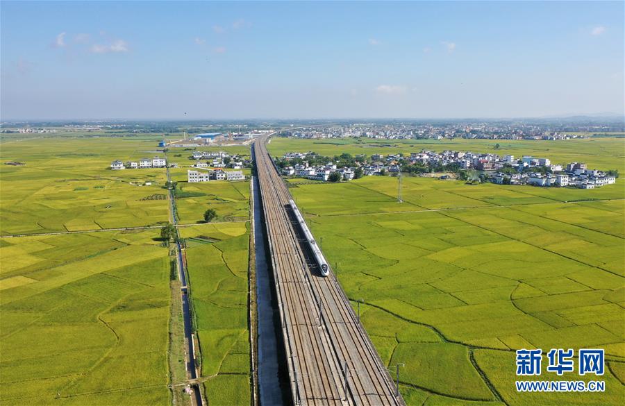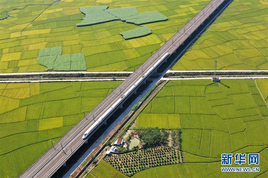 眼下,廣西賓陽縣古辣鎮(zhèn)大面積稻田進(jìn)入收獲期,一列列南來北往的動(dòng)車從稻田間飛馳而過,構(gòu)成一幅幅美麗的豐收?qǐng)D畫。