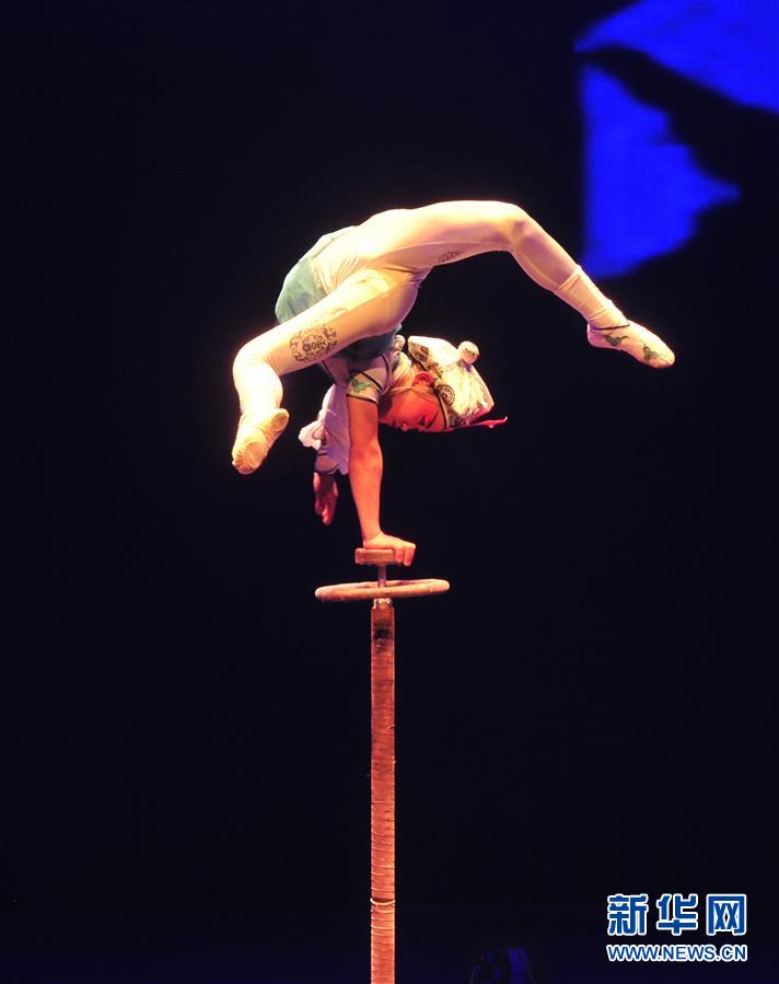 11月3日,來(lái)自埃塞俄比亞的演員在表演《蹬技》。 當(dāng)日,第十七屆中國(guó)吳橋國(guó)際雜技藝術(shù)節(jié)滄州會(huì)場(chǎng)世界雜技精品惠民展演在河北省滄州市體育館舉行。中國(guó)吳橋國(guó)際雜技藝術(shù)節(jié)創(chuàng)辦于1987年,每?jī)赡昱e辦一屆,是我國(guó)雜技藝術(shù)領(lǐng)域舉辦歷史最長(zhǎng)、規(guī)模最大、影響最廣的國(guó)家級(jí)藝術(shù)賽事和文化節(jié)慶活動(dòng)。 新華社記者 牟宇 攝