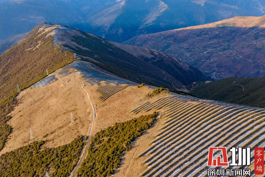 位于海拔3900米的四川省阿壩州小金縣大壩口村,場面壯觀的光伏發(fā)電廠占據(jù)了整個山脈。