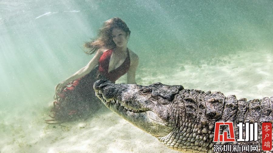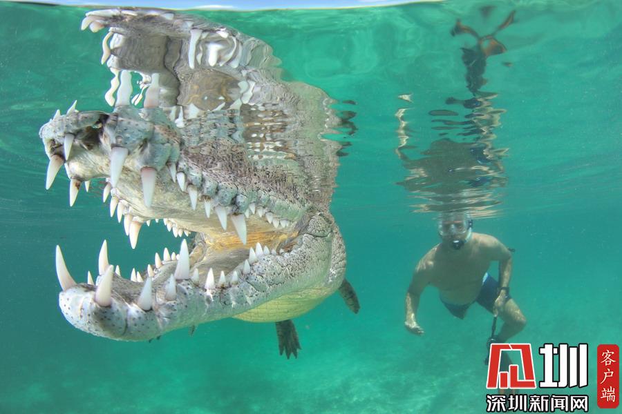 2018年7月16日?qǐng)?bào)道(具體拍攝時(shí)間不詳),在墨西哥Chinchorro Banks水下,這些鱷魚們艷??刹粶\,它們有機(jī)會(huì)同美女模特在水下同游。鏡頭里,它們露出獠牙鋸齒,看上去就像是開心大笑的樣子,想必是和美女同游才如此樂得合不攏嘴。而能敢于直面這些兇殘的肉食性動(dòng)物,這些美女模特也顯得是勇氣十足,令人欽佩。攝影師Ken Kiefer拍攝了這些震撼畫面。