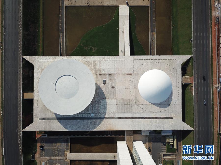這是11月10日無人機(jī)拍攝的位于巴西首都巴西利亞的國會。 新華社記者 辛悅衛(wèi) 攝