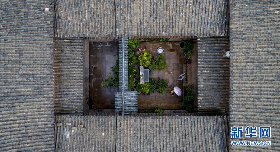 放暑假的楊蓉在石屏縣異龍鎮(zhèn)符家營村家中(8月8日無人機拍攝)。新華社記者江文耀攝