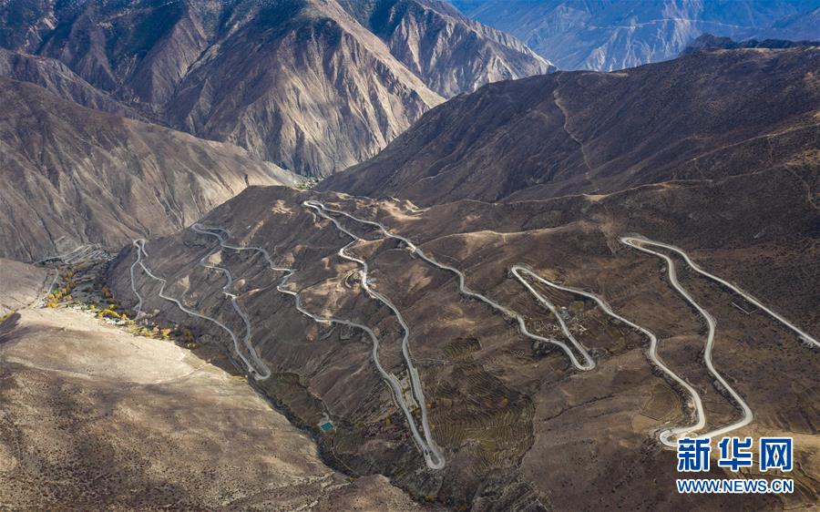 這是“怒江72拐”,該處位于西藏自治區(qū)昌都市八宿縣境內,是川藏線上一段艱險與美景并存的山路(10月23日無人機拍攝)。全長2000多公里的川藏公路,從成都開始,一路向西到終點拉薩,在橫斷山脈、喜馬拉雅山脈和念青唐古拉山脈間蜿蜒盤旋,因海拔落差大,彎道眾多,形成天路奇觀。川藏公路1954年12月25日通車,65年來,國家對川藏公路進行了大規(guī)模改造升級,建設了眾多橋梁和隧道,行車條件得到明顯改善。新華社記者江宏景攝