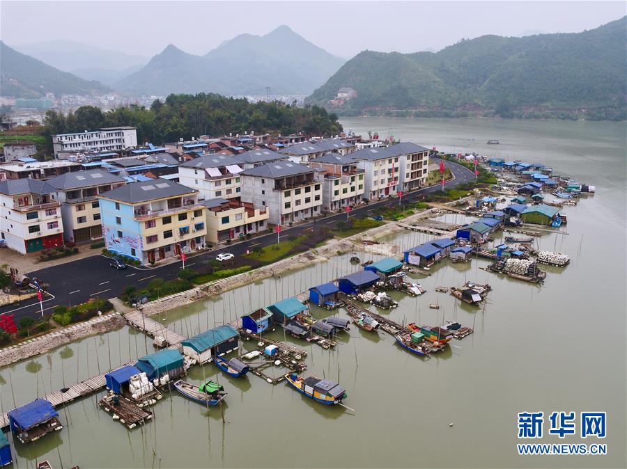 在寧德福安市溪邳村,一艘漁船經(jīng)過岸上新居(3月8日無人機(jī)拍攝)。新華社記者姜克紅攝