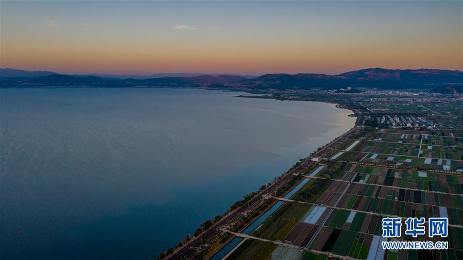 這是云南省玉溪市通??h的田園風(fēng)光(11月23日無(wú)人機(jī)拍攝)。初冬時(shí)節(jié),云南省玉溪市通海縣風(fēng)景秀麗,山巒、湖水與農(nóng)田組成了一幅美麗的田園詩(shī)畫卷。新華社記者胡超攝