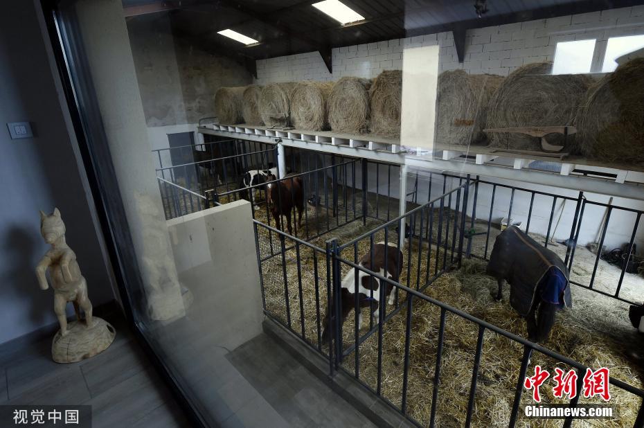 當(dāng)?shù)貢r間2019年11月25日,法國桑圖瓦地區(qū)弗賴斯內(nèi),一家特別的“酒店”開張,入住者可以透過玻璃清楚的看到馬廄里的馬,還可以跟馬親密接觸。圖片來源:視覺中國