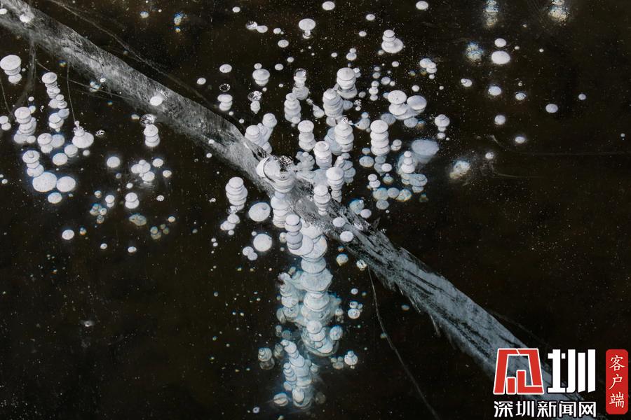 據(jù)了解,“冰泡”是由湖底植物釋放出的沼氣(甲烷)在上升過程中因極寒氣溫導致冰封速度過快,被“鎖”在冰層之中而形成。